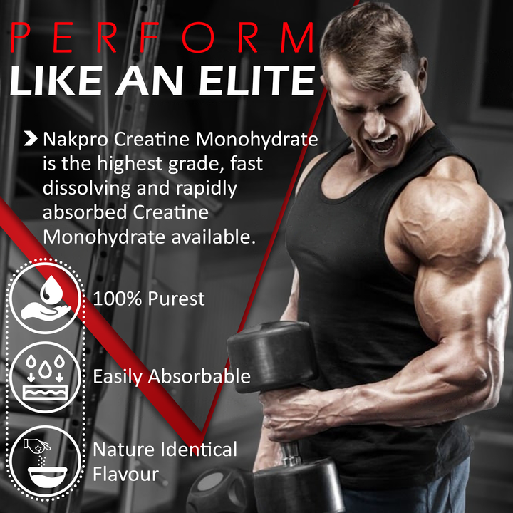 Nakpro Micronized creatine monohydrate is essential in the process of sending energy directly to muscles and has been shown to help increase overall muscle mass and boost strength.