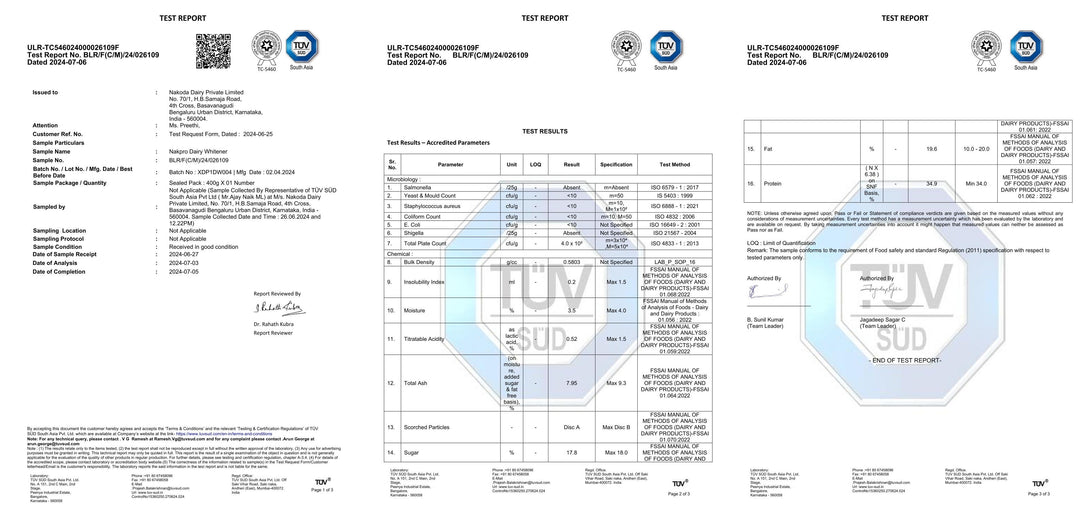 NAKPRO DAIRY WHITENER LAB TEST REPORT