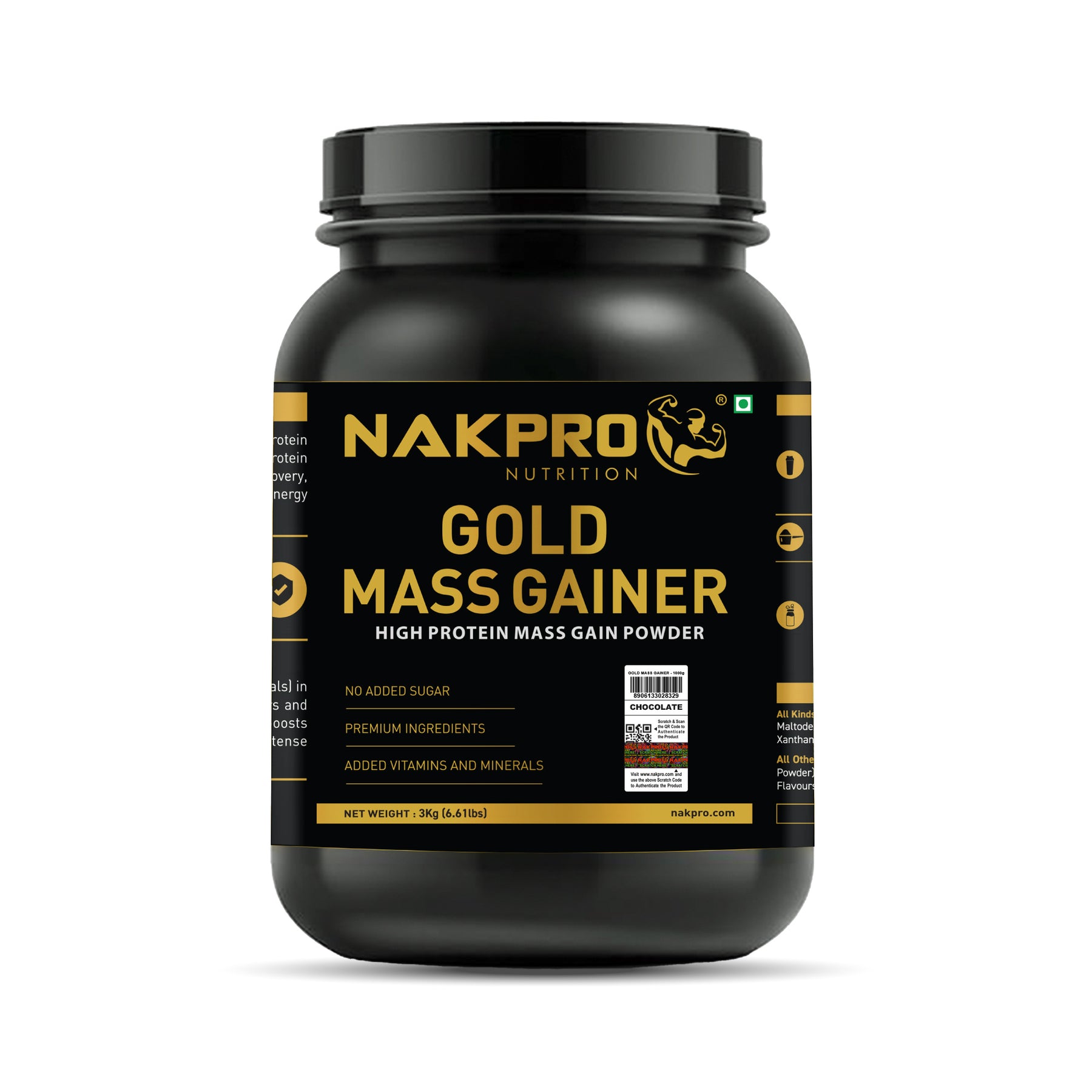 • LEAN MUSCLE MASS GAIN WITH NO SIDE EFFECTS: Nakpro gold mass gainer protein powder is loaded with High Calories, Healthy Fat, BCAAs that help build lean muscles and improve your exercise performance. It is enriched with 27 vitamins and minerals that help in boosting immunity and provide performance fuel to conquer your workout. It contains no added sugar and is trans-fat-free.