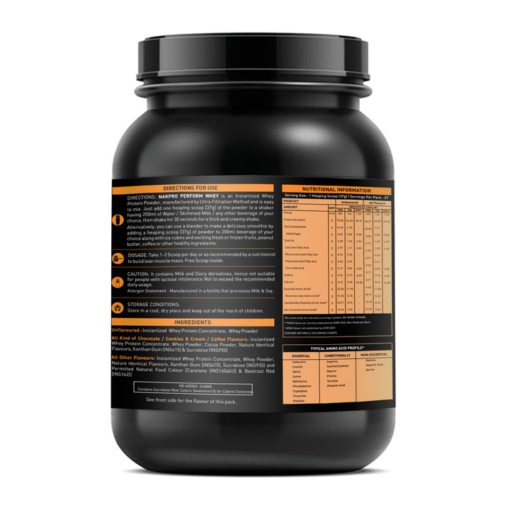 - Nakpro Whey Protein Concentrate contains 26g Protein, 11g EAA, 5.7g BCAA per serving (Unflavored). It is rich natural source of protein that helps to Build Lean muscle, enhances recovery, Supports Healthy Metabolism, and Reduces Muscle loss.