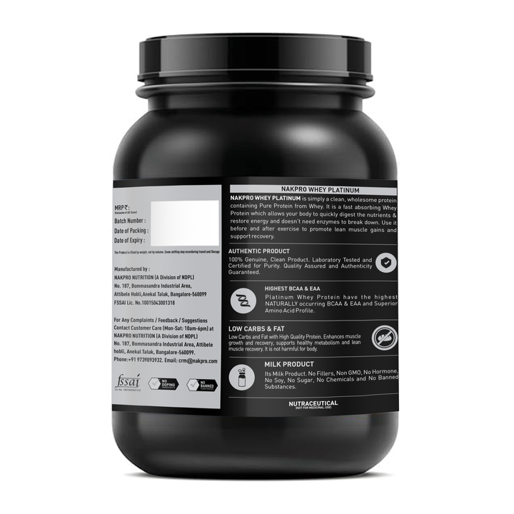 - Platinum Whey Protein from NAKPRO doesn’t contain any added sugar or trans-fat. Platinum Whey Protein Isolate is the primary source of protein in the product