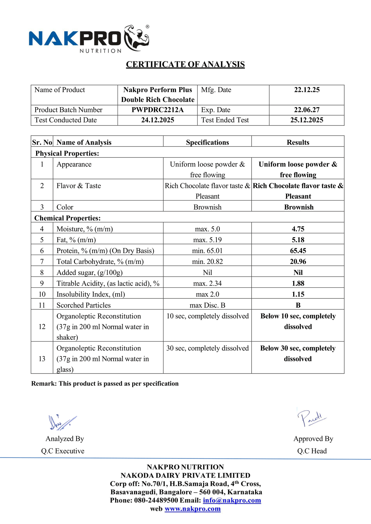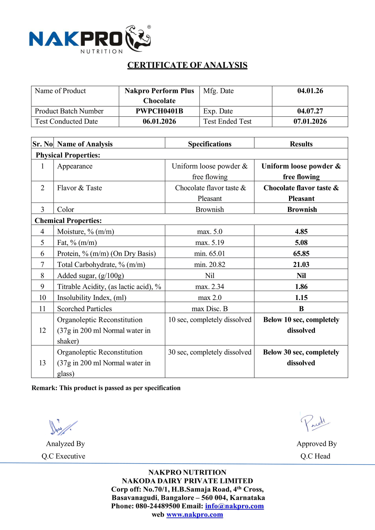 NAKPRO PERFORM PLUS LAB TEST REPORT