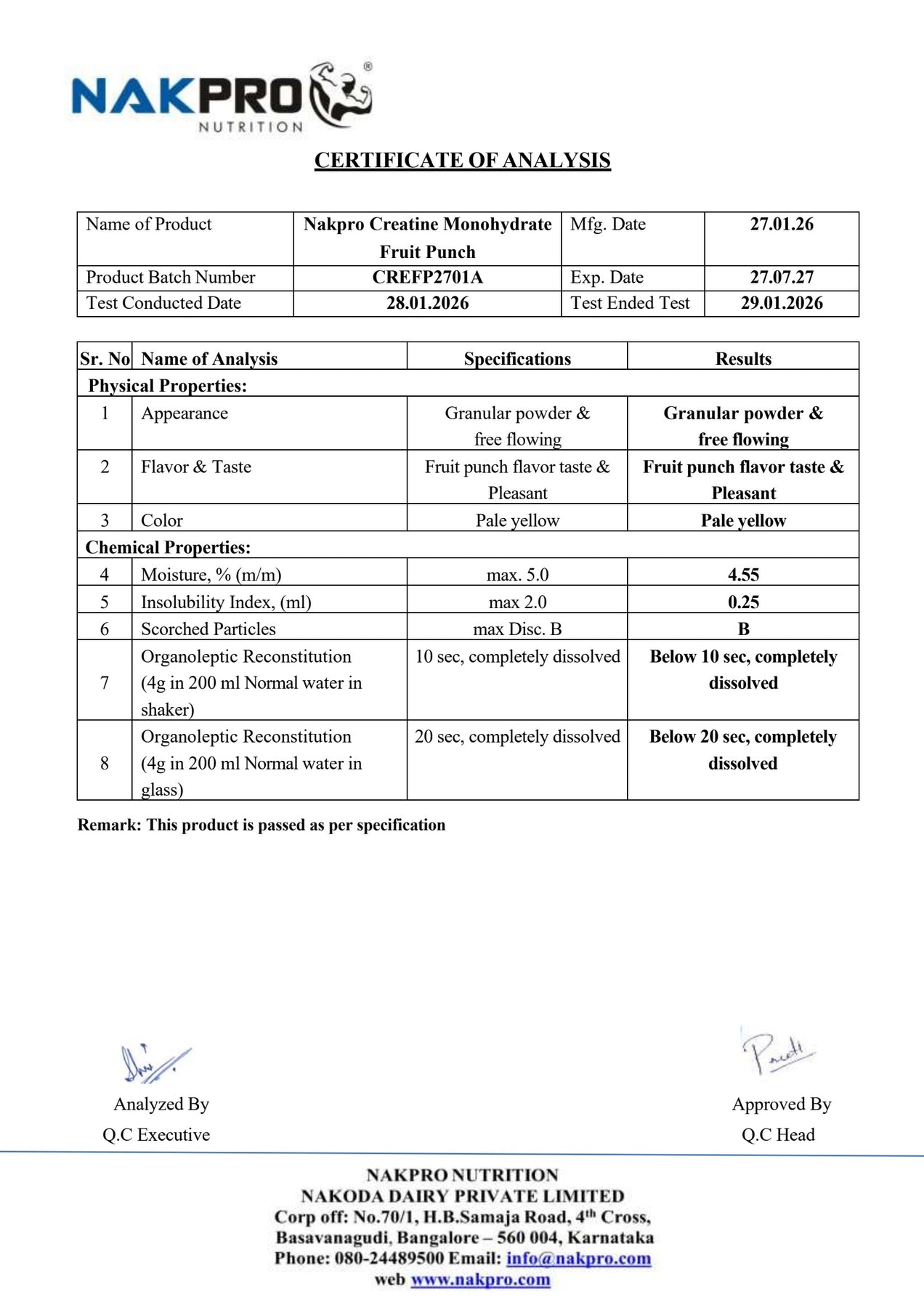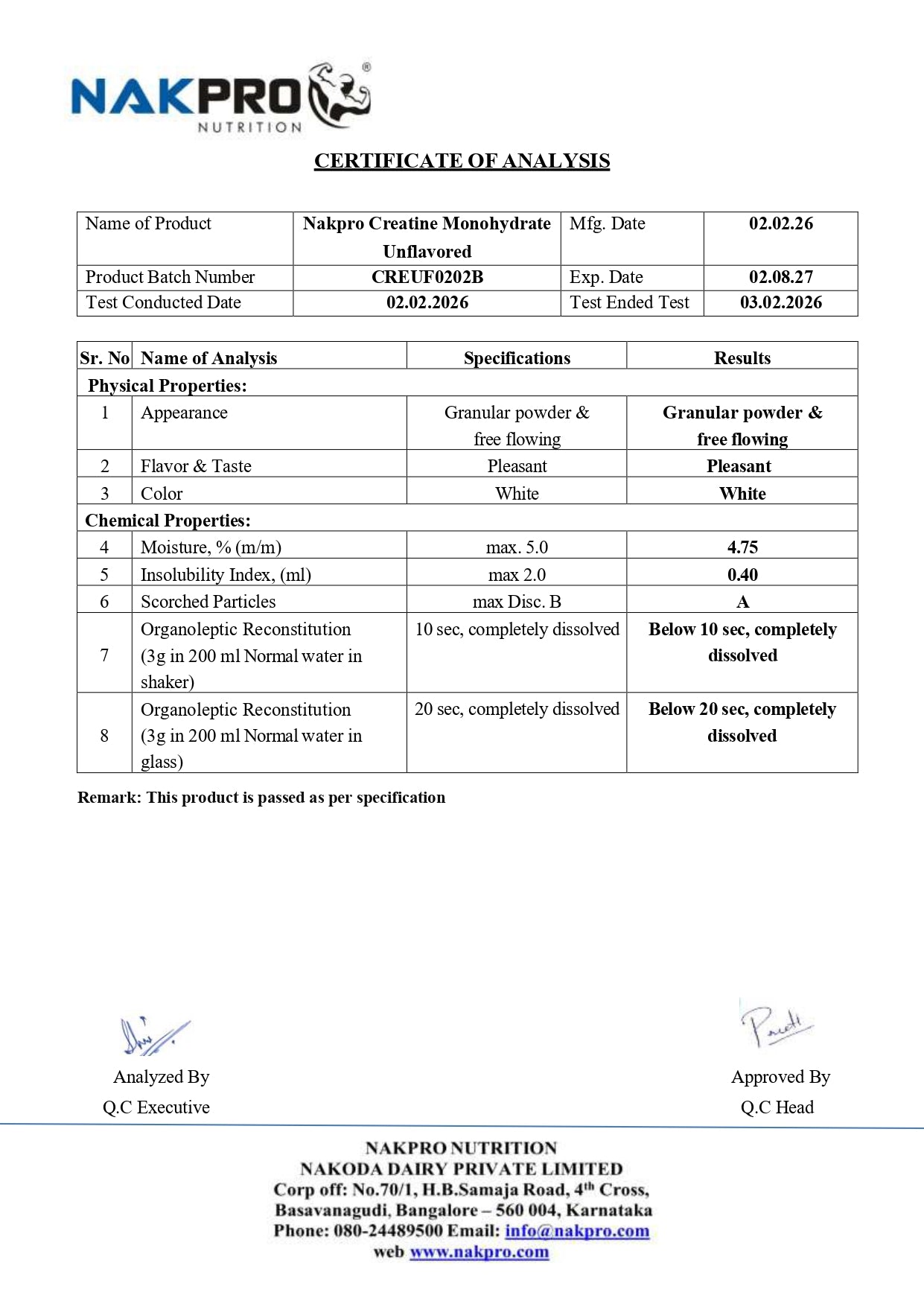 NAKPRO CREATINE MONOHYDRATE LAB TEST REPORT