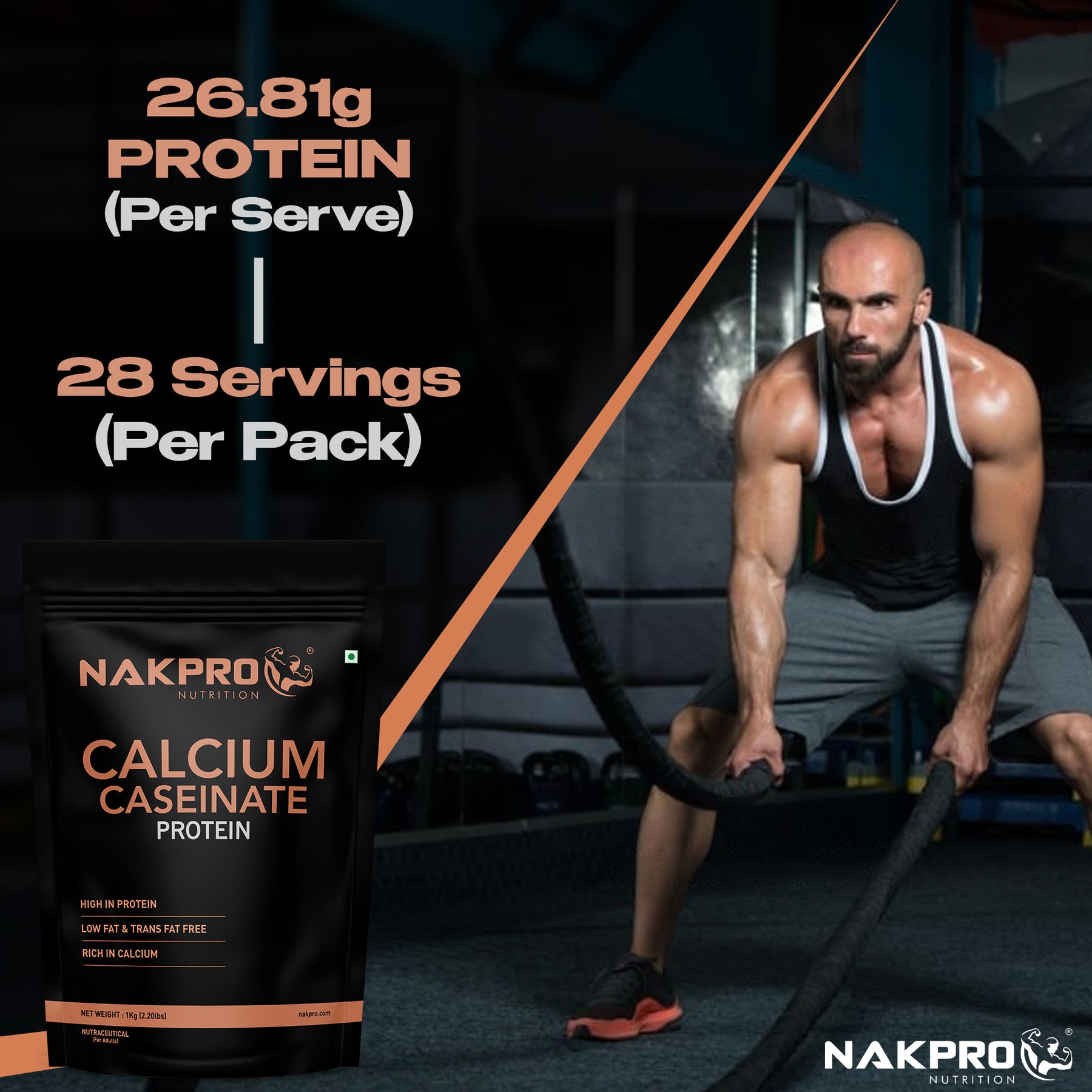 Nakpro Calcium Caseinate Protein Powder | 81g Protein | Slow Release Protein | High Calcium