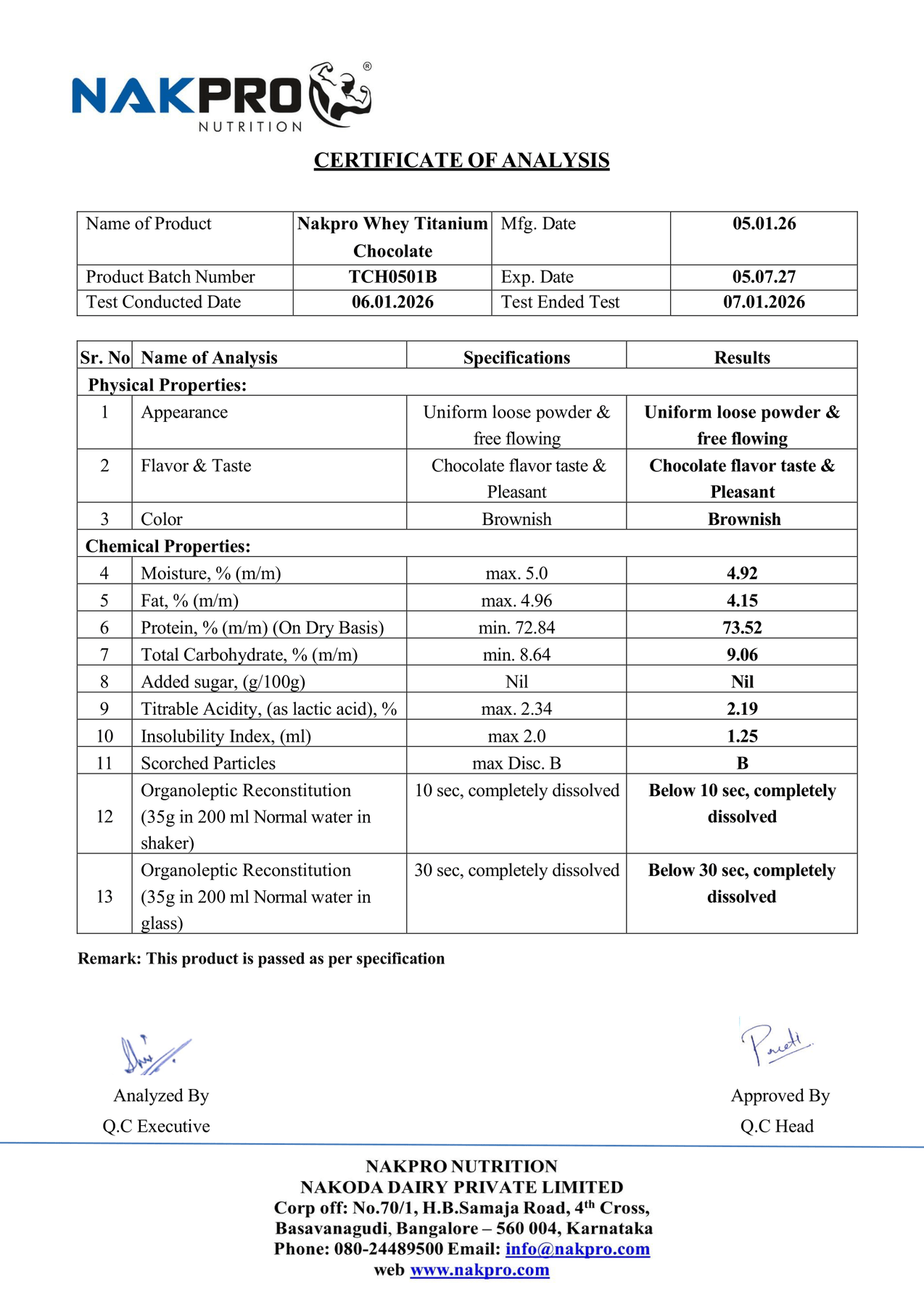 NAKPRO TITANIUM LAB TEST REPORT
