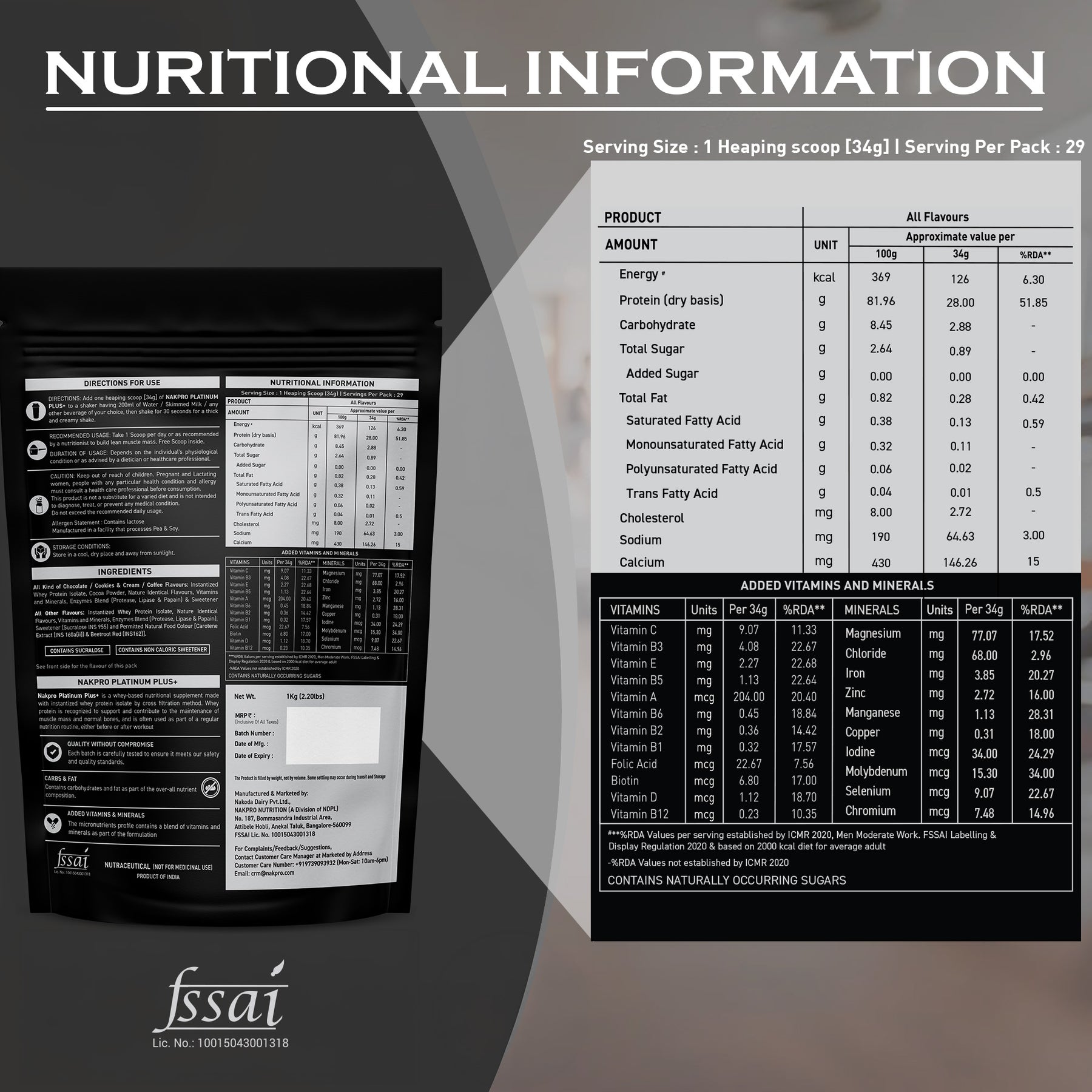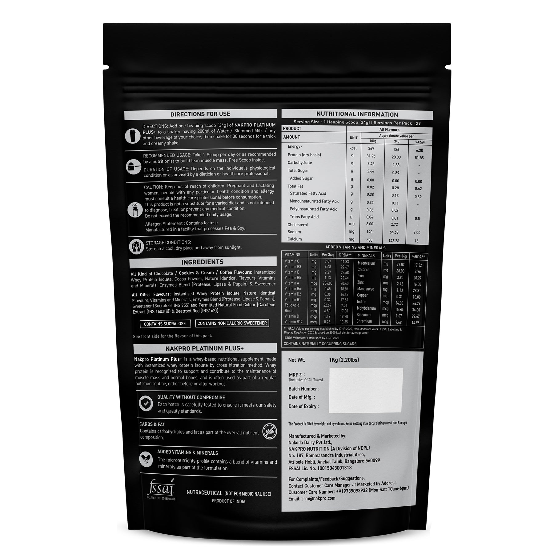 All kind of chocolate/cookies & cream/ coffee flavour : Instantized Whey Protein Isolate, Cocoa Powder, Nature Identical flavours, Vitamins & Minerals, Enzymes Blend (protease, Lipase & Papain) & Sweetener (SurcaloseINS955)