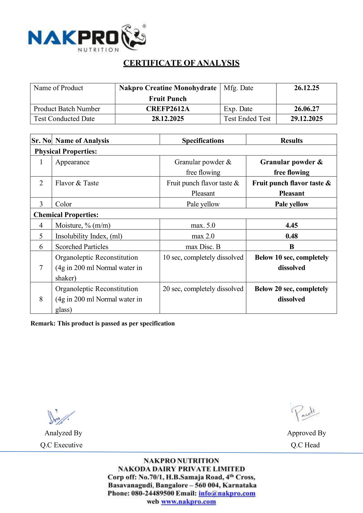NAKPRO CREATINE MONOHYDRATE LAB TEST REPORT