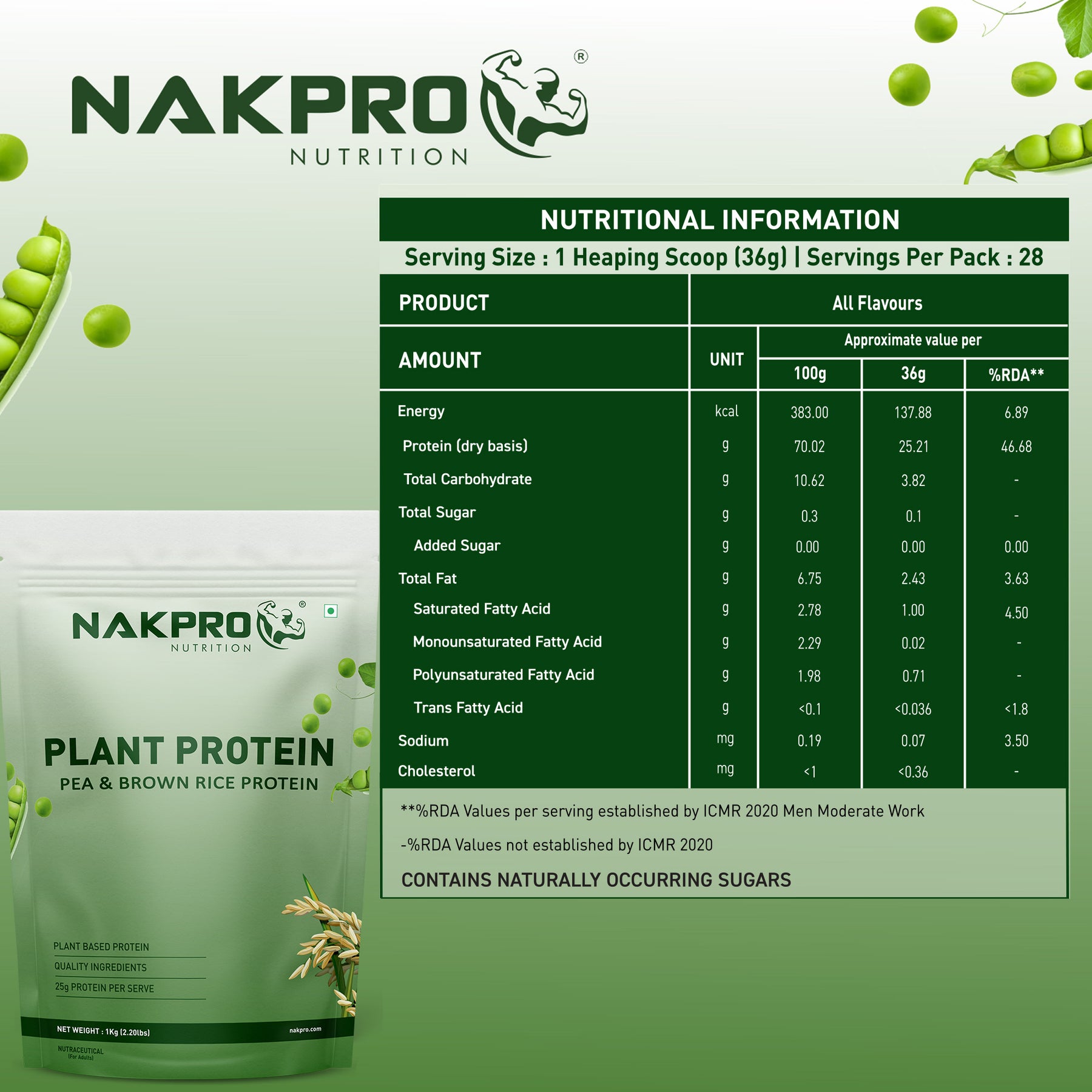 - PLANT BASED PROTEIN: Nakpro Plant Protein Powder is a Plant protein with all essential amino acids. It is a Pea protein & Brown rice protein. It is completely protein packed product and lactose-free protein powder.