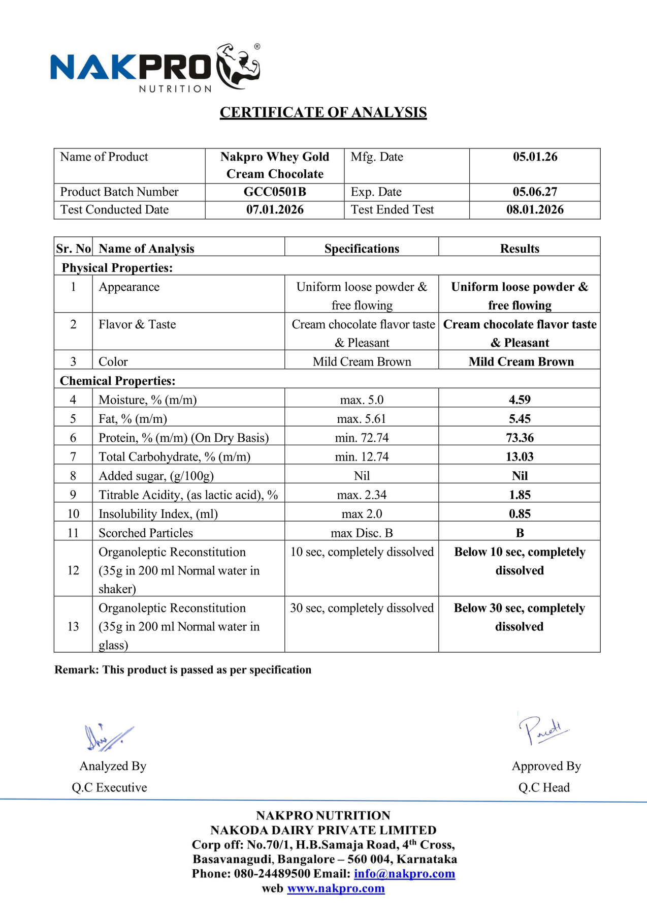 NAKPRO GOLD LAB TEST REPORT