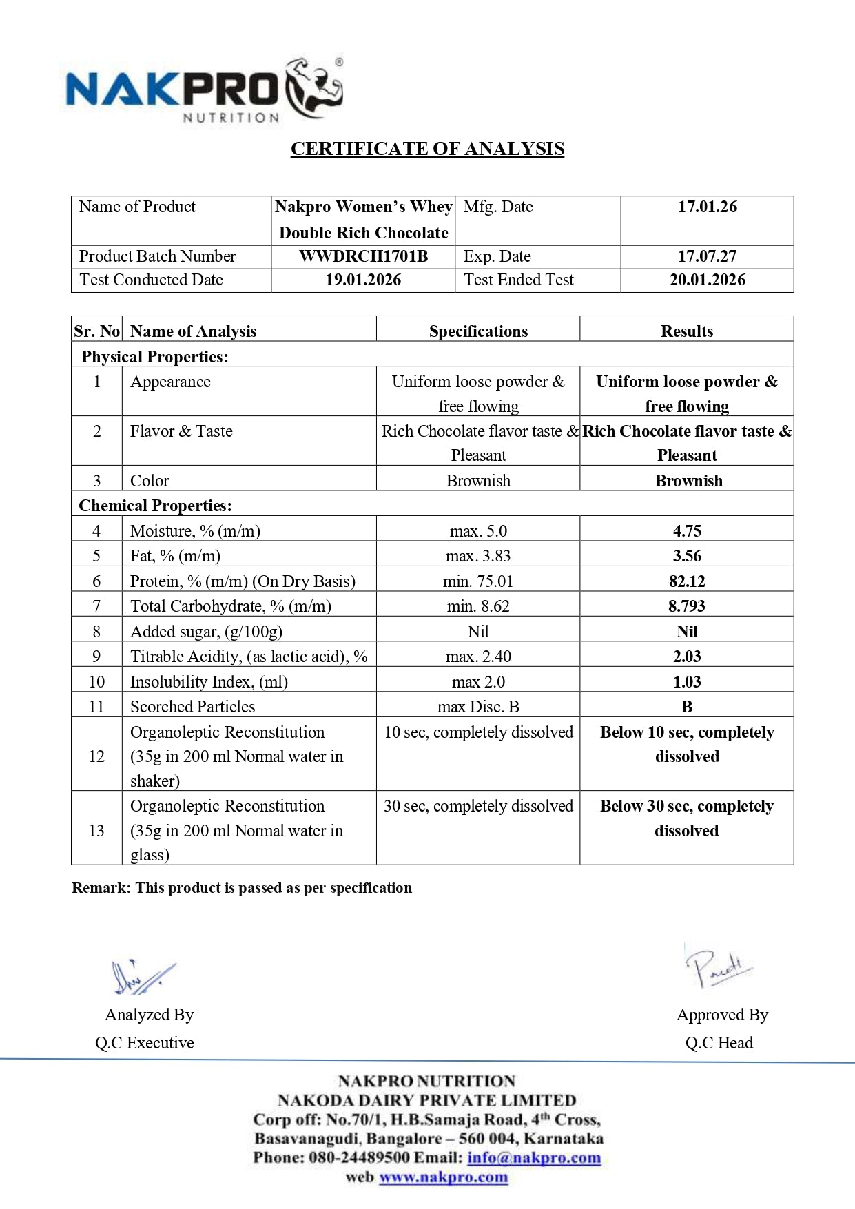 NAKPRO WOMEN'S WHEY LAB TEST REPORT
