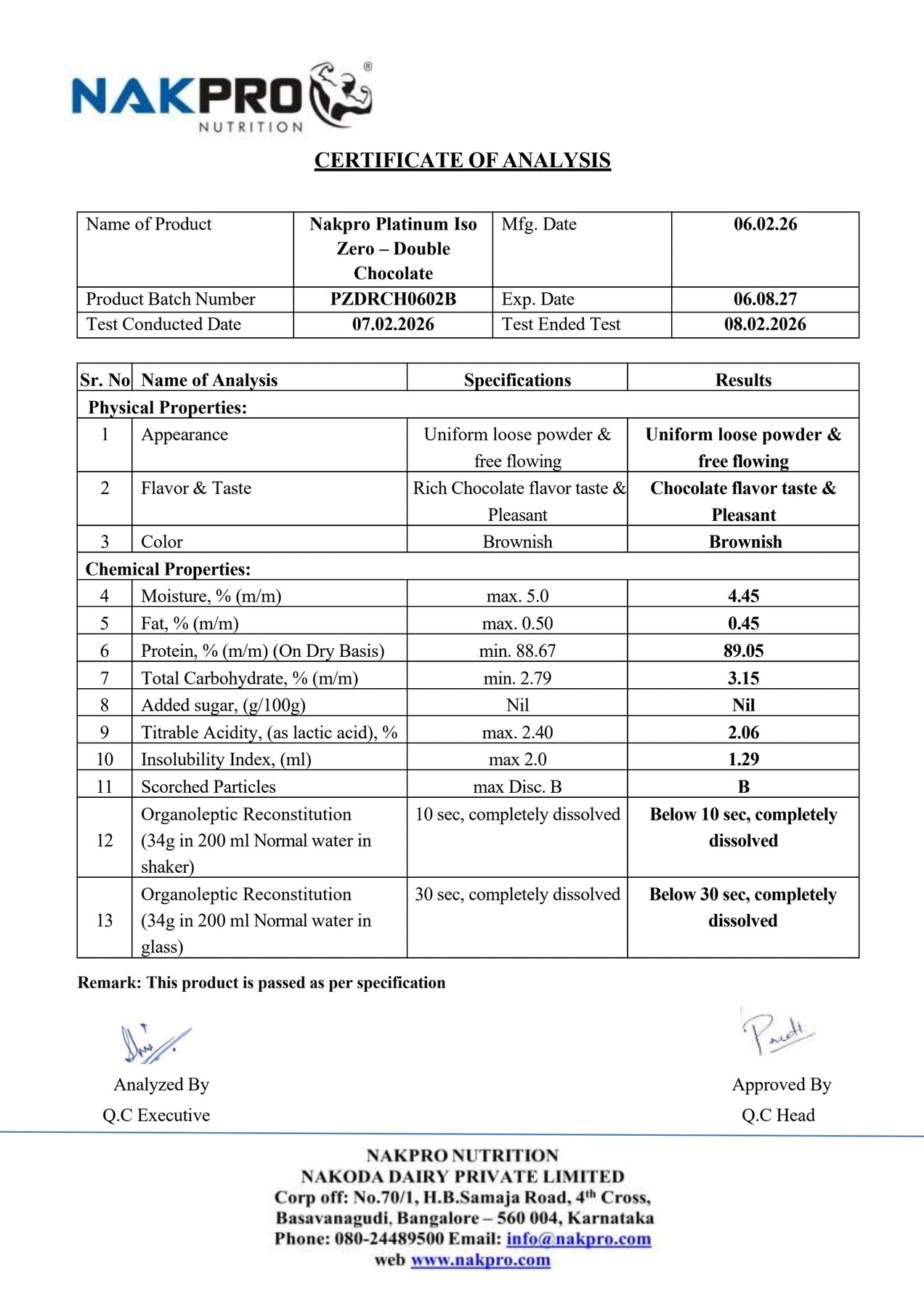 NAKPRO PLATINUM ISO ZERO LAB TEST REPORT