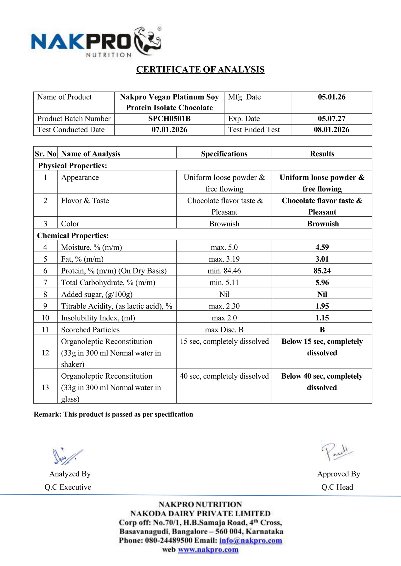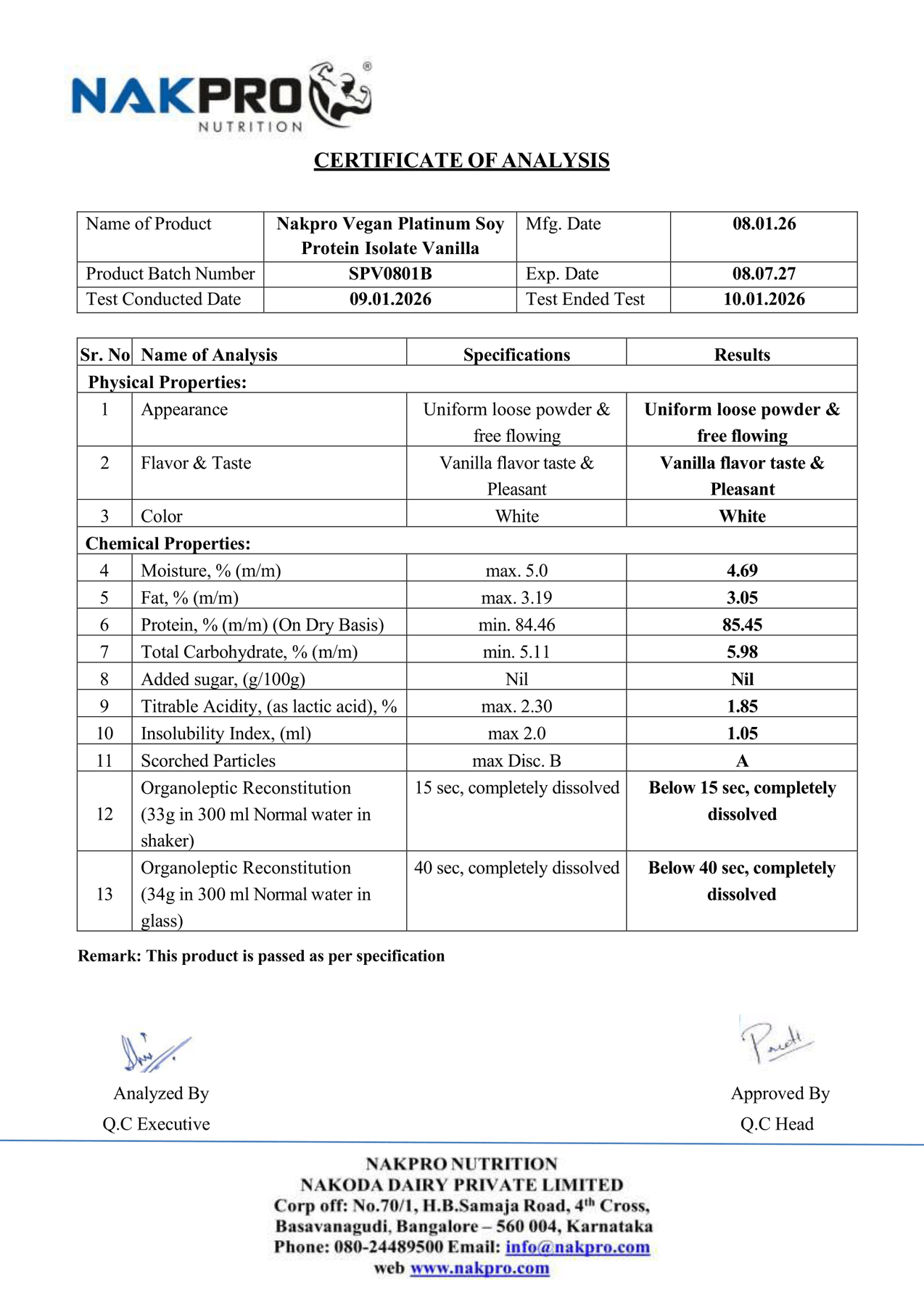 NAKPRO SOY PROTEIN LAB TEST REPORT